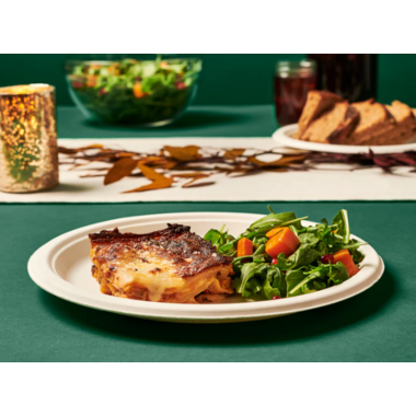 Includes: 44 x 10 inch plates made from upcycled sugarcane and recycled wood chips- Certified compostable