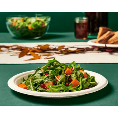 Includes: 44 x 9 inch plates made from upcycled sugarcane and recycled wood chips- Certified compostable