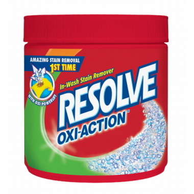 RESOLVE Oxi-Action In-Wash Stain Remover takes care of even the toughest clothing stains in every wash. With the power of RESOLVE Oxi-Action In-Wash Stain Remover, you can pre-treat the stains you see and use as in-wash stain remover for the stains you miss. Whether it's spaghetti sauce, mustard, grass, ring around the collar, ink or wine, RESOLVE Oxi-Action Laundry Stain Remover can help. Use RESOLVE Oxi-Action In-Wash Stain Remover with every wash load in either a Standard or HE washers to remove tough stains right in the wash.