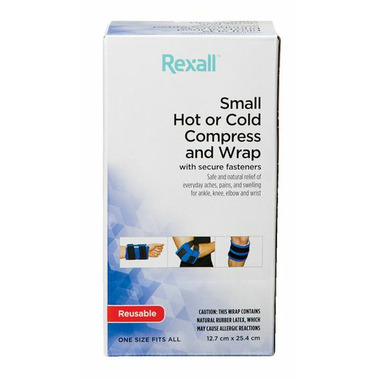 The Rexall Hot or Cold Universal Compress features fasteners for easy application, and safe and natural relief of everyday aches, pains, and swelling. Small size for ankle, knee, elbow and wrist.