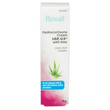 The Rexall Hydrocortisone Cream with Aloe helps with the temporary relief of minor skin irritations, itching and redness.