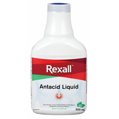 The Rexall Liquid Antacid Mint provides fast acting, long lasting relief of heartburn, indigestion and acid reflux.