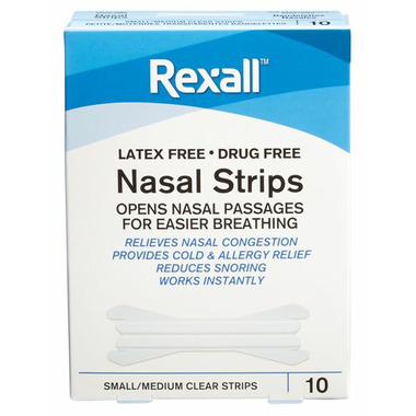 Rexall Nasal Strip opens the nasal passages for easier breathing. Relives nasal congestion, provides cold and allergy relief and reduces snoring. Works instantly.