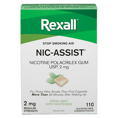 Calm your cravings with Rexall Nic-Assist Nicotine Gum Regular Strength. Great tasting nicotine gum to calm your cravings and help you quite smoking.