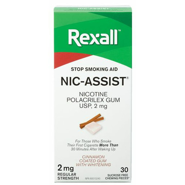 Calm your cravings with Rexall Nic-Assist Nicotine Gum Regular Strength. Great tasting nicotine gum to calm your cravings and help you quite smoking.
