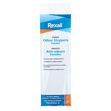 Rexall's odour stoppers insoles helps prevents odor causing bacteria, ventilated for added comfort.