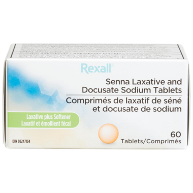 Rexall Senna Laxative and Docusate Sodium Tablets. Relieves occasional constipation.