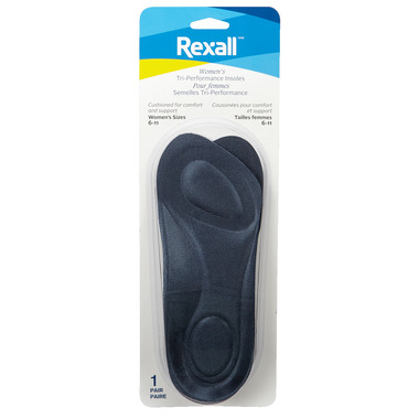 Rexall Tri-Performance Insoles are cushioned for comfort and support.