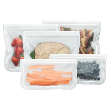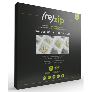 - 5 piece (re)zip lay-flat starter kit includes 3 lunch and 2 snack sized bags