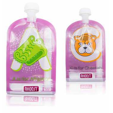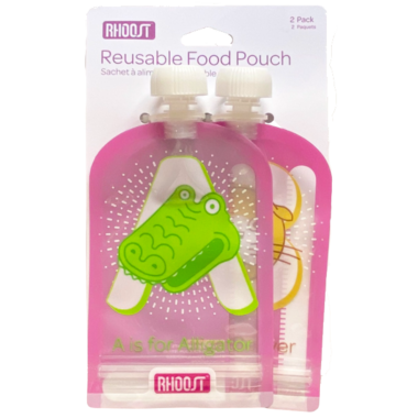 The adorable Rhoost Reusable Food Pouch is the ideal way to serve delicious, healthy, and homemade purees to your child. The pouches are refillable and reusable and are made from food grade and non-toxic materials. The animal and alphabet themed pouches reinforce your child’s love for learning. The front of the pouch is clear so it shows the contents and the back has a convenient area to label your child’s name or the ingredients.