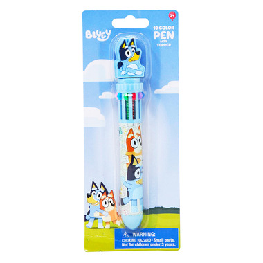 Make writing and drawing more fun with the Bluey 10-Color Pen with Character Topper! Featuring a colorful Bluey-themed topper and 10 vibrant ink options, this pen is perfect for kids who love Bluey and enjoy creative activities. With a simple click, easily switch between colors to add variety to notes, artwork, and journaling. The ergonomic design makes it comfortable to hold, while the sturdy clip allows for easy attachment to notebooks or backpacks.