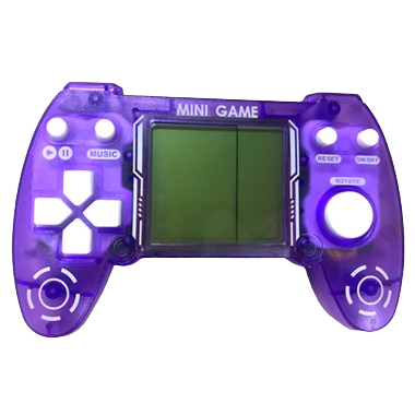 Portable arcade game, translucent colours, 26 classic games, 2 batteries included.