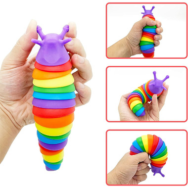 • Random splicing: The slug toy can rotate 360 degrees, has a total of 19 joints, and is super flexible. All 19 joints can be removed and reinstalled separately. When you have a slug toy of multiple colors, you can disassemble and reassemble the color you like.