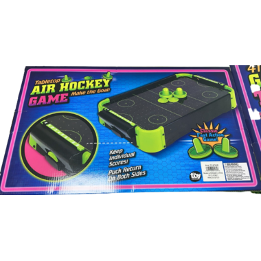 This Neon Air Hockey table-top version of the regular game will bring so much fun into your party or rec room. The portable size of the game makes it easy to take it with you everywhere. 3x AA batteries not included.