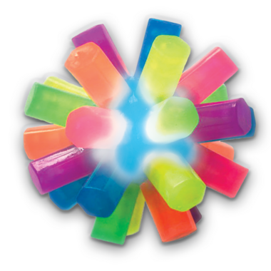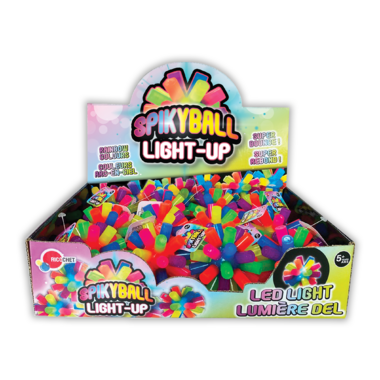 These rainbow balls will entertain any child with their colorful, light-up design. The soft, durable rubber spiked ball lights up on impact and comes in a variety of colors. Each ball includes 3 AG3 batteries already inside, making it ready to be played with right away!