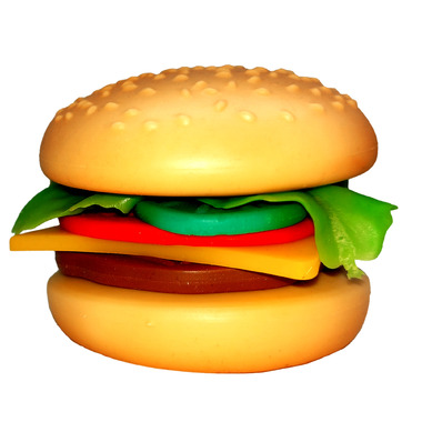 Stress relief sensory toy. Personalize your burger with 5 squishy ingredients.