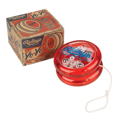 Turn back time and enjoy some classic fun with this Red plastic vintage style yoyo from Ridley's Game Room. Watch it light up and give off sound effects as you play.