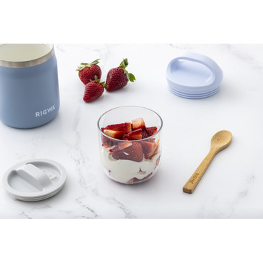 This reimagined food jar holds 20oz, keeps food hot or cold for hours, and is designed with a wide-mouth opening, leakproof lid, and convenient handle. Featuring a stylish ceramic coating for a premium eating and serving experience. Includes a 12oz insert for even more options!