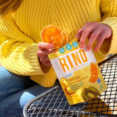 RIND Snacks' keeps the skin on the slices of the most delicious, upcycled dry fruit to MAXIMIZE taste and MINIMIZE waste. The result is a whole-food super snack that's full of flavor and helps fight food waste!