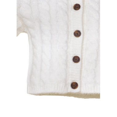 The Cable Cardigan features a classic cable knit pattern that adds a touch of sophistication to any outfit. Made from high-quality, soft yarn, it provides warmth and comfort without sacrificing style. The cardigan is available in a range of charming colors, each chosen to complement your child's playful spirit and sense of adventure.