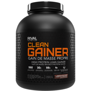 Rival Nutrition Clean Gainer is a high protein lean mass gainer powder that at a glance contains 560 quality calories. The Rival Nutrition Clean Gainer also contains 30 grams of a premium protein, as well as 99 grams of multi-source carbohydrates. With a killer combo of full-spectrum proteins, eight energizing carb sources, and essential fats, CLEAN GAINER Lean Mass Gainer Powder is high-octane nutrition (over 560 calories worth) that fuels the intense needs of world-class athletes as well as those who aspire to be. Rival Nutrition Clean Gainer contains High Quality ingredients for cleaner gains. This includes whey protein isolate, micellar casein protein, milk protein isolate, rice bran, blueberries, quinoa, flaxseeds, oat fibre, MCT oil, ginger root, avocado, and sunflower oil. Rival Nutrition clean gainer contains Essential fats from flax, avocado, and sunflower. Being a high protein lean gainer, the Clean Gainer also contains just 8 grams of sugar. Clean Gainer is available in a 5LB container which features a total of 15 full servings per container or a 10LB bag featuring a total of 31 full servings.