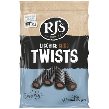 Licorice Twist (78%) [Wheat Flour, Cane Sugar, Glucose Syrup, Molasses, Water, Licorice Paste (2.5%), Treacle, Humectant (422), Rice Bran Oil, Salt, Aniseed Oil, Glazing Agent (903)], Centre Filling (22%) [Sugar, Coconut Oil, Milk Solids, Cocoa Powder, Emulsifier (322 (Soy)), Flavour].