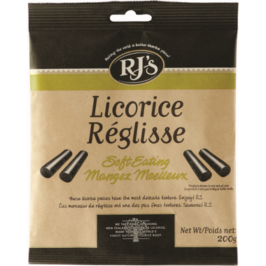 RJ’s Licorice original soft black licorice has become a classic confectionery treat. Decades of eating... oops... research has been undertaken to develop their black and red soft eating licorice, balancing perfect mouth-feel with the right amount of licorice or fruit flavours. Try some and taste the difference, and become part of the RJ's Licorice family.