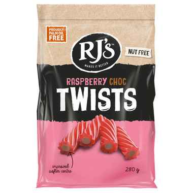 Raspberry Twist (78%) [Wheat Flour, Cane Sugar, Glucose Syrup, Water, Humectant (422), Flavour, Rice Bran Oil, Acidity Regulators (296, 330), Salt,Licorice Paste, Colour (129), Glazing Agent (903)], Centre Filling (22%) [Sugar, Coconut Oil, Milk Solids, Cocoa Powder, Emulsifier (322 (Soy)), Flavour].