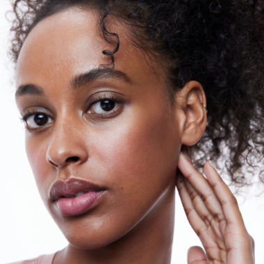 Finish by highlighting the face using the RMS Skin2Skin Classic Fan Brush to apply ReDimension Hydra Dew Luminizer focusing on the high points, like the cheekbones, bridge of the nose, brow bone, and cupid's bow or lightly dust all over for a beautiful dew-like luminosity that sets and finishes any look.