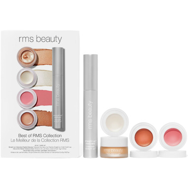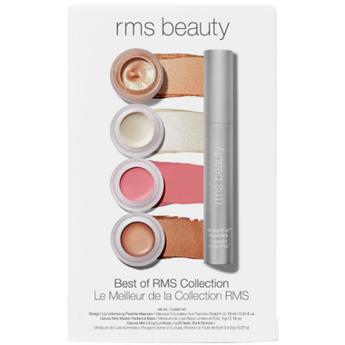 The perfect set for a glowing look: four RMS iconic lit-from-within radiance producers in power-packed mini pots, plus a full-size Straight Up Volumizing Peptide Mascara.