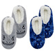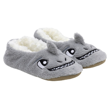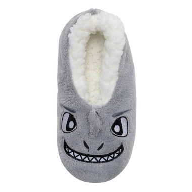 The Shark Tie Dye 2pk Slipper Socks in Gray fleece upper with 3D appliqus, embroidered details and Blue tie dye repeat print. Featuring a suede bottom & flexible movement & non-constricting for better balance and stay on, play on power.
