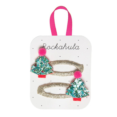 Get into the festive spirit with these super sparkly Xmas tree clips! A pair of glitter Christmas trees, topped with a perfect pink pom pom, these hair clips are secured onto golden ribbon wrapped snap clips.