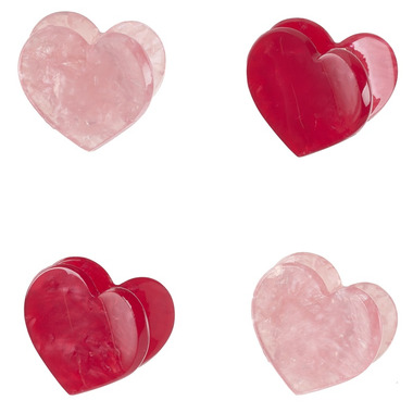 Love is in the hair! This charming set of four heart-shaped hair clips are perfectly sized for fine hair. Made from pearlescent acetate; the clips are lightweight, secure, and comfortable for all-day wear.