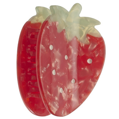 Feel super sweet in this Strawberry claw clip. The sweetest addition to those summer picnics. Made in pearly acetate, with little grippy teeth to hold hair in place.