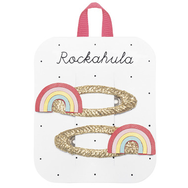 Feel the vintage vibes with these bold and beautiful rainbow clips! Created from a bold rainbow palette, these clips are sat upon gold grosgrain wrapped snap clips.