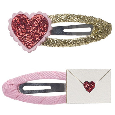 This love hearts hair and jewellery gift box is the perfect present for your little loves! This sweet set includes two glittery hair clips - one featuring a red glittering heart and a sweet little love letter - plus a glittering heart necklace and a bracelet. Each set is beautifully presented in a gift box that is the perfect size for letter box gifting!