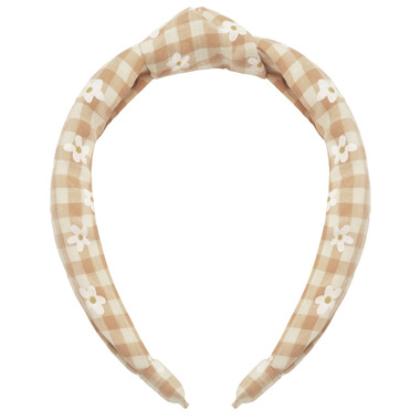 Brighten Rockahula's day with Rockahula's wide knotted headband. Featuring a twisted knot and made gorgeous gingham fabric and scatted with beautiful daisies, this headband is made for a comfortable fit for little heads!