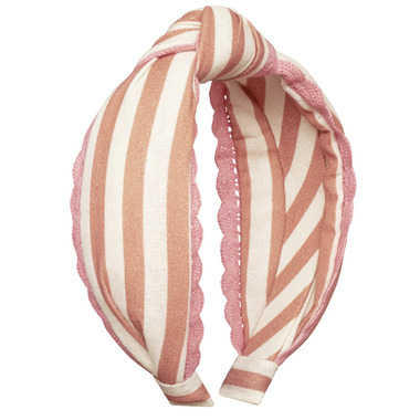 Rockahula's stripy knotted headband is made from the softest brown fabric, and is edged with a pink scalloped trim. It features a twisted knot and is made for a comfortable fit for little heads!