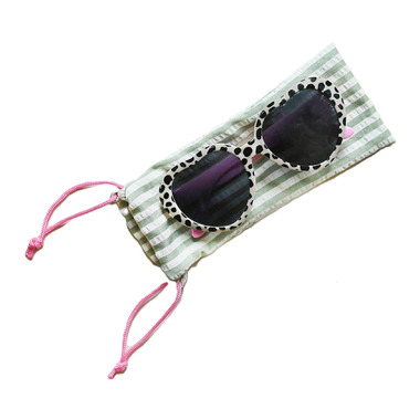 A stylish pair of sunglasses with heart shaped leopard print frames with pretty pink arms! Each pair comes with a cleaning case and offers full UV protection.