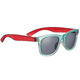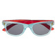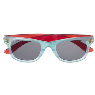 A pair of cool blue framed sunglasses with a lightning flash and red arms. Designed to protect little eyes from the sun, each pair comes with a protective cotton case and offers full UV protection.