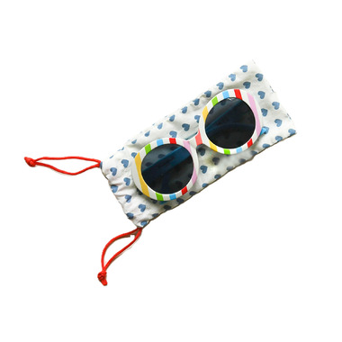 The most bright and beautiful pair of sunnies around! The perfect sunshades with a rainbow striped rim and bright blue arms! Each pair comes with a cleaning case and offers full UV protection.