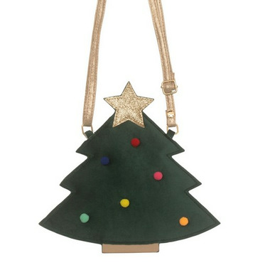 Rock around the Christmas tree with this sweet velvet bag! Featuring a glittering star topper and brightly coloured pom poms, this Christmas tree bag is made from super soft velvet and has a beautiful gold fabric strap, with a break point for safety. This bag features a small hidden coin pouch with zip closure, which is perfect for keeping those pennies or small treasures safe!