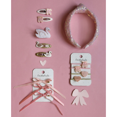 Mix and match this adorable pack of three clips for the cutest look! Three little hand tied ribbon bows made in a palette of soft pinks and sat upon gold croc clips! Wear them one at a time or all at once!