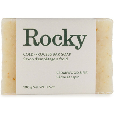 Bring nature into your bathroom with the woodsy aromas of this natural soap bar. Cedarwood helps to remove excess oil from the skin while fir needle oil has deodorizing properties. To help remove dirt and oils that may have become embedded in the skin, Rocky has added in blue cornmeal which is a natural exfoliant. Perfect for use after a hard day's work or a weekend of adventures.