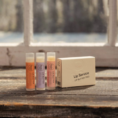 Keep your lips feeling soft and nourished year-round with this trio of bestselling fruit-scented balms. Crafted with ultra-moisturizing organic cocoa butter and protective beeswax.