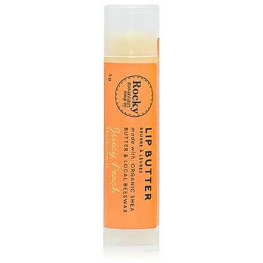 All the indulgence of fresh, juicy peaches and cream in a lip balm. Rocky's new, limited edition Juicy Peach Lip Butter is made with organic Peach and Vanilla for a creamy treat, while protective Beeswax, rich organic Shea Butter and moisturizing organic Sesame Oil to keep your lips smooth, moisturized and chap-free.