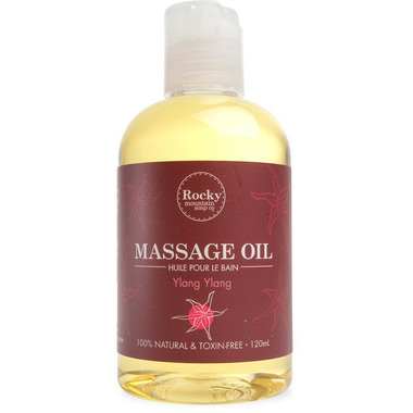 The Rocky Mountain Soap Co. all-natural Massage Oils include a wealth of therapeutic base ingredients and essential oils to provide the ultimate aromatherapy massage. Sunflower oil is very emollient without feeling greasy on the skin. Jojoba Seed Oil is emollient with regenerative and tonifying qualities that nourish dry, damaged skin. Smooth, lightweight Apricot Kernel Oil revitalizes dry, delicate, mature, or sensitive skin types. And a touch of Vitamin E replenishes dry or damaged skin. Filled with Rocky Mountain's subtle but playful blend of ylang ylang, sweet orange and lavender, the Ylang Ylang Massage Oil captures the mood and awakens the senses.