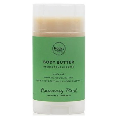 Rich, hydrating body butter in our new Rosemary Mint scent provides nourishing care for dry, stressed skin. Organic cocoa butter and seed oils soften the skin, while local beeswax helps to lock in moisture. Breathe in while you apply this rich butter to your skin and enjoy our invigorating new blend of balancing rosemary and bright peppermint.