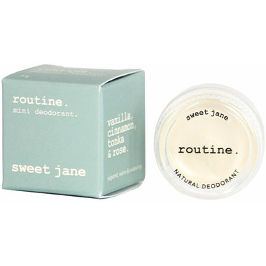 Routine has changed the scent for Sweet Jane. It's no longer vanilla and pear; it's now vanilla, cinnamon, tonka and rose. To me it smells like vanilla and cinnamon in the jar, and smells more like cloves and rose on my skin. It works well and the scent is nice but it's way smaller than I expected, even for a trial size.