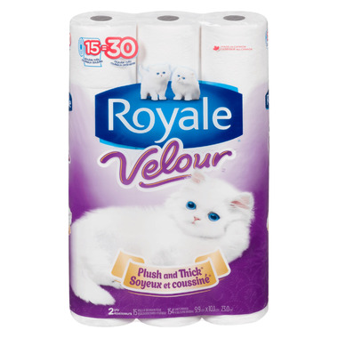 Velvety Soft™, Plush and Thick® ROYALE® Velour™ bathroom tissue offers an experience totally unlike any other ROYALE® product.